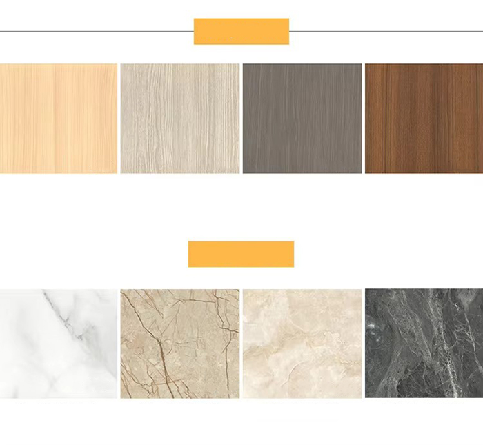 Dearadh Éagsúlaithe Tacaíonn sé le níos mó ná 100 patrún lena n-áirítear gráin adhmaid, grán cloiche, dath soladach, etc., agus is féidir patrúin grádán agus ealaíne a shaincheapadh.