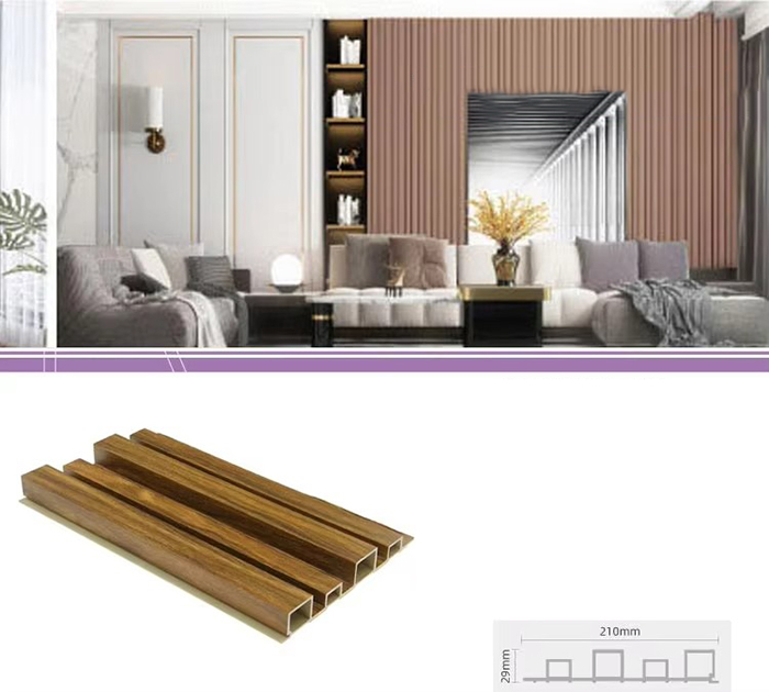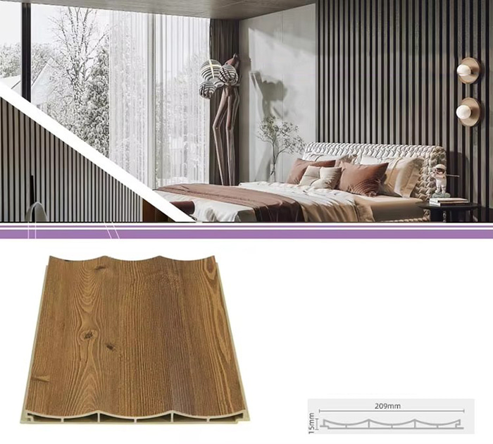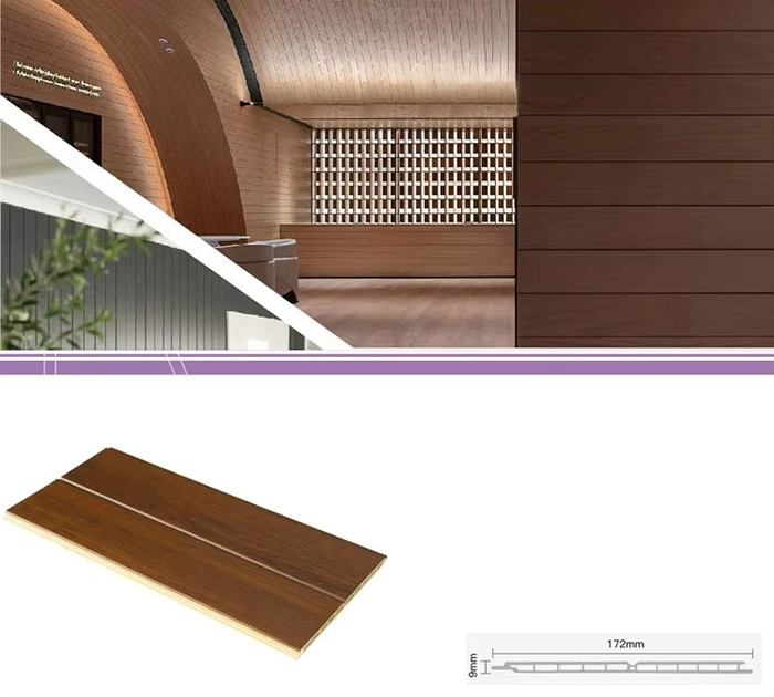 Is cineál nua ábhar tógála atá neamhdhíobhálach don chomhshaol iad painéil dhíon WPC, nó painéil taobh istigh plaisteach adhmaid, déanta as snáithín adhmaid nó púdar adhmaid in éineacht le teirmeaplaisteacha (cosúil le poileitiléin, polapróipiléine nó clóiríd polaivinile). Déantar an t-ábhar seo trí phróiseas múnlaithe easbhrúite ardteochta, agus déantar an dromchla a mhaisiú de ghnáth le lamination, priontáil 3D nó lamination scannáin, ag taispeáint uigeacht nádúrtha agus mothú cosúil le hadhmad, agus freisin marthanacht agus friotaíocht aimsire plaisteach. Ní hamháin go bhfuil cuma álainn adhmaid ag painéil dhíon WPC, ach freisin na heasnaimh adhmaid a shárú cosúil le dífhoirmiú éasca, ionsú taise, agus lobhadh, rud a fhágann gur ábhar maisiú taobh istigh idéalach iad