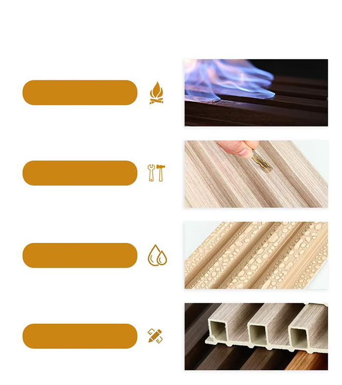 Eacnamaíoch Tá an costas iomlán níos ísle ná an costas a bhaineann le painéil adhmaid soladach (tá an praghas thart ar 1/4 d'adhmad soladach), agus tá an costas cothabhála íseal (ní gá péinteáil nó athnuachan).