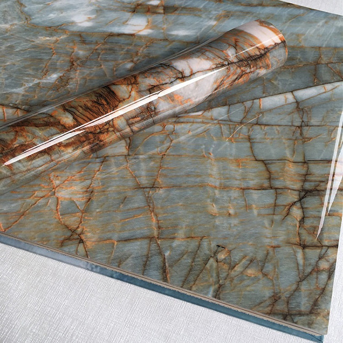 Scannán urláir: Tá an ciseal caitheamh-resistant scratch-resistant (≥5000 réabhlóid), oiriúnach do thimpeallachtaí ard-taise cosúil le cistiní agus seomraí folctha.