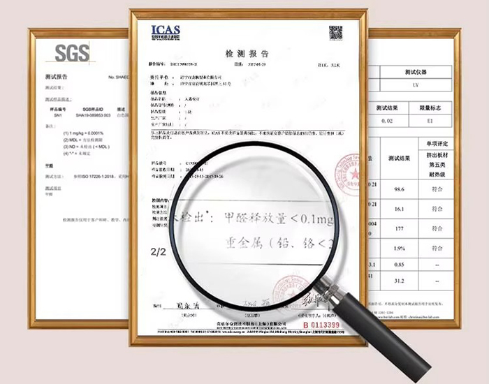 Cigireacht Cáilíochta Scaoileadh formaildéad: Caighdeán EN 717-1, tástáil cábáin dúnta ≤ 0.05mg / m³.