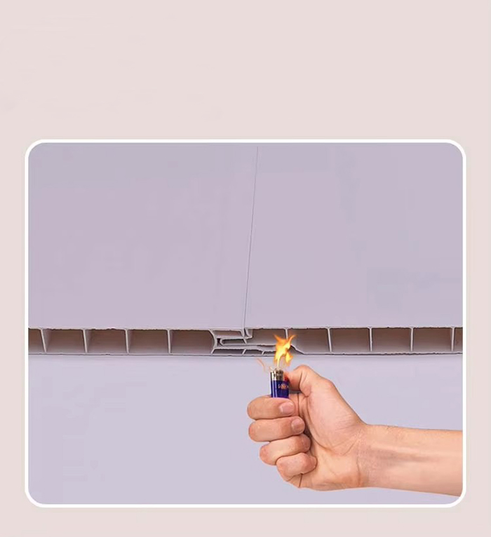 Is ábhar maisiúil é uasteorainn PVC déanta as roisín clóiríd polaivinile (PVC) mar an príomh-amhábhar, púdar carbónáit chailciam agus cobhsaitheoir, agus déantar é a dhlúthú trí phróiseas teocht ard agus ardbhrú. Glacann an dromchla teicneolaíocht priontála, aistrithe nó lannaithe, ar féidir leis uigeachtaí éagsúla a insamhladh ar nós gráin adhmaid agus gráin cloiche, agus tá tréithe uiscedhíonach agus taise-cruthúnas, retardant dóiteáin, meáchan éadrom agus neart ard. Tá sé oiriúnach do radhairc a bhfuil ard-taise nó riachtanais mhaisiúla arda cosúil le cistiní, seomraí folctha, ospidéil, agus spásanna tráchtála, agus is ionadach idéalach é do bhoird gipseam traidisiúnta agus gussets alúmanaim.