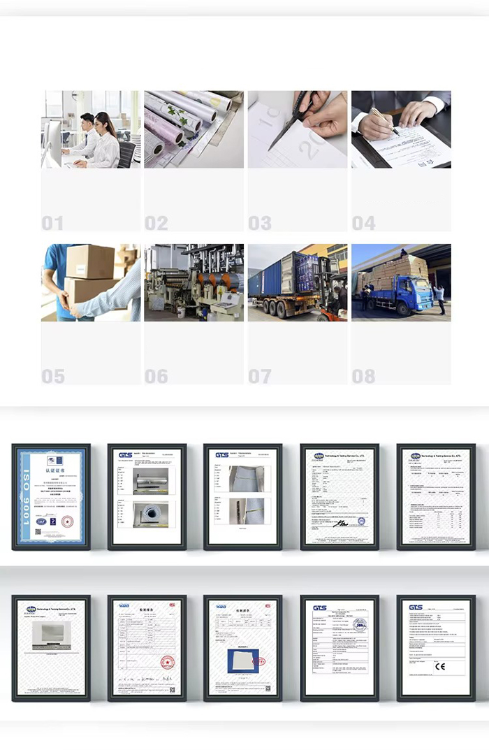 Próiseas táirgthe: Áirítear le próiseas táirgthe greamáin balla ghreamaitheacha PVC próiseáil ábhair PVC agus sciath ghreamaitheacha.