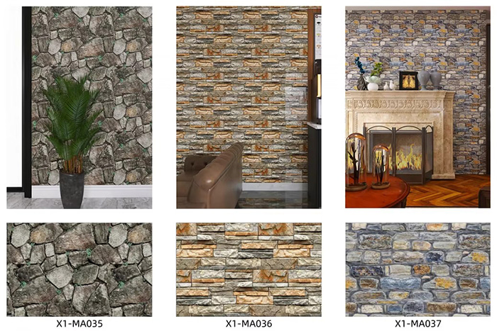 Maisiú balla, gráin adhmaid bréige, gráin cloiche, agus éifeachtaí scuabtha miotail, atá oiriúnach do sheomraí maireachtála, seomraí codlata, seomraí leanaí, etc.