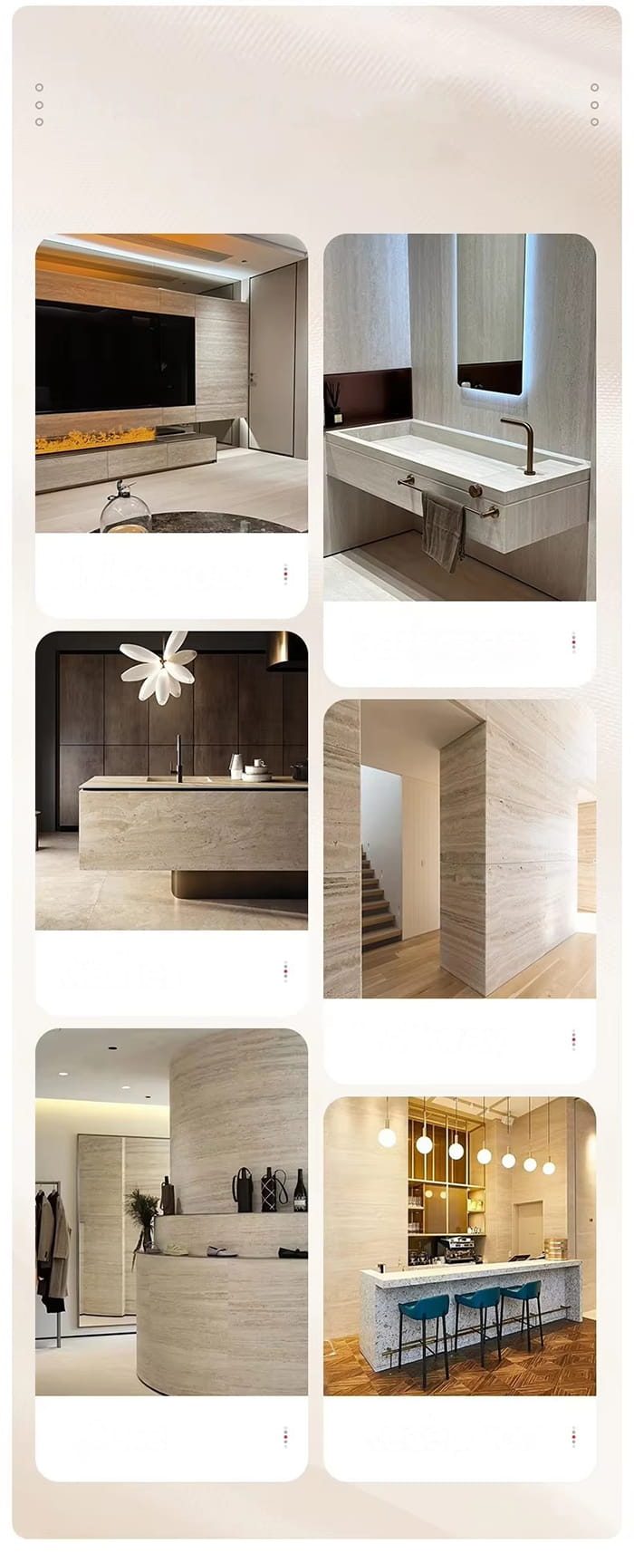 Tógáil ballaí taobh istigh: Is féidir é a úsáid le haghaidh maisiú balla istigh cónaithe, oifigí, óstáin, malls siopadóireachta, scoileanna, ospidéil, foirgnimh oifige, Villas, pobail ard-deireadh, etc., mar bhallaí cúlra, cistiní, seomraí folctha agus spásanna eile.